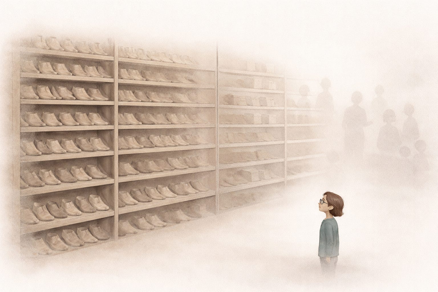 Als ich, Jahrgang 1978, die Werkstatt als Kind sah, war sie schon lange nicht mehr in Betrieb. Aber der Geruch war noch da. Durchdringend. Unvergesslich. Der Leim, den man zum Zusammenkleben der Schuhe brauchte. Selbst wenn man die Werkstatt nur kurz öffnete, schlug er einem entgegen. Und überall standen Regale voller Leisten. Hunderte davon. Für jeden Kunden, für jeden Fuß, hatte man einen eigenen Leisten gebraucht. Regale voller Leisten, die niemand mehr brauchte, weil sich die Leute keine neuen Schuhe mehr machen ließen.